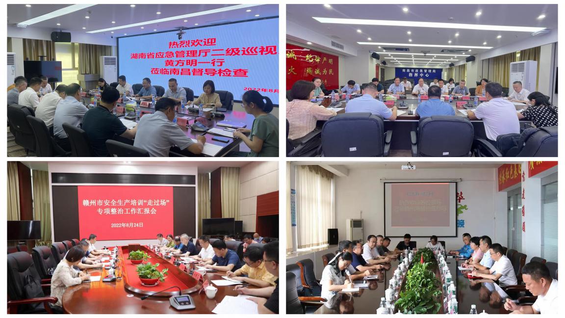 根據應急管理部安全生產執(zhí)法和工貿安全監(jiān)督管理局《關于開展安全生產培訓“走過場”專項整治督導互查工作的通知》安排,8月22日至26日,應急部安全生產培訓“走過場”專項整治第18督導組(湖南省督導互查組)來我省開展安全生產培訓“走過場”專項整治督導檢查,省廳黨委委員、政治部主任劉闖,省廳宣教處、宣教中心相關同志,南昌市、贛州市政府領導以及應急管理局相關同志陪同檢查。